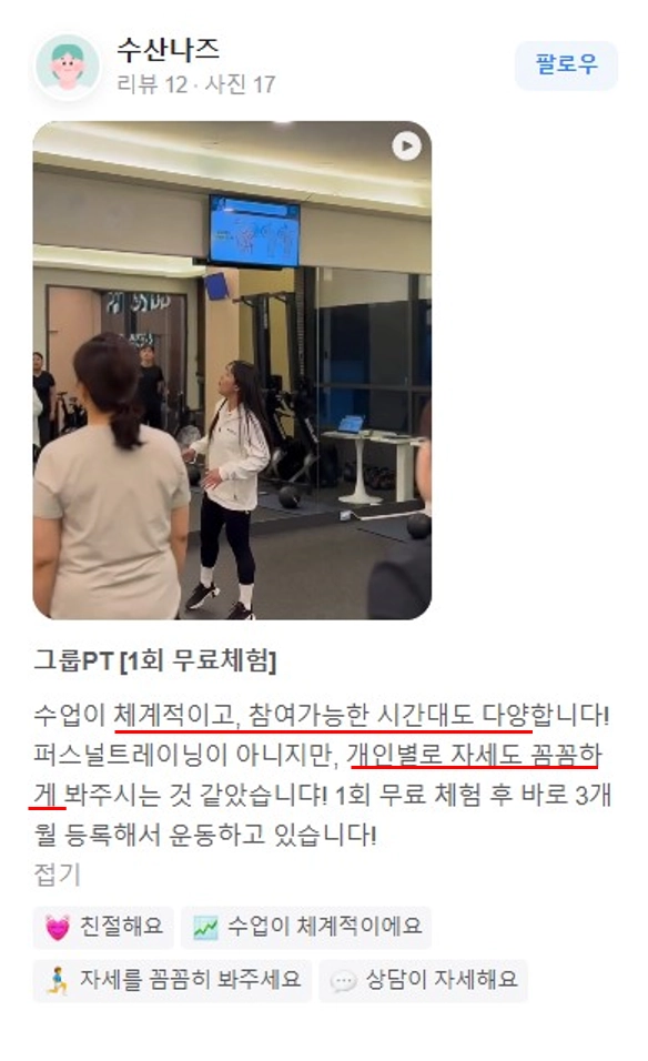 개인PT처럼 놓치지 않고 꼼꼼하게 봐줘요!